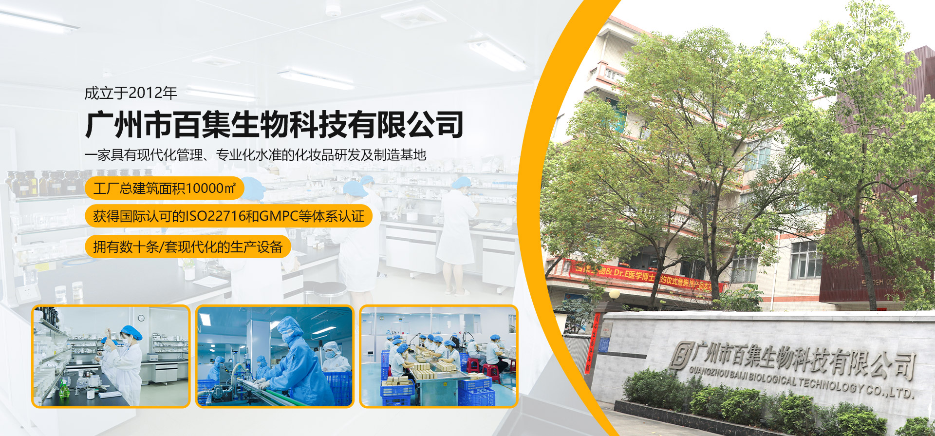廣州市百集生物科技有限公司成立于2012年,坐落在亞洲化妝品硅谷的廣州市白云區(qū),是一家具有現(xiàn)代化管理、專業(yè)化水準(zhǔn)的化妝品研發(fā)及制造基地,為客戶提供專業(yè)的OEM/ODM一站式服務(wù),涵蓋產(chǎn)品規(guī)劃、配方開發(fā)、包裝設(shè)計、功效測試、乳化、灌裝、包裝、倉儲物流等全方位服務(wù)。產(chǎn)品涵蓋各類化妝品水、乳、霜、膏、面膜、精華、BB霜、CC霜、素顏霜、精油及粉類等成品及半成品,涵蓋日化線及專業(yè)線配方。公司秉承“創(chuàng)新、共贏”的核心價值觀......